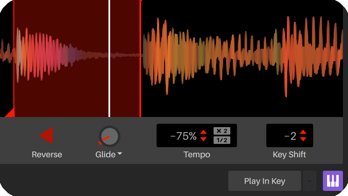 找到并剪切样本中最多 16 个最佳部分,每个部分都具有独立的调性转换、时间伸缩和音频播放控制。