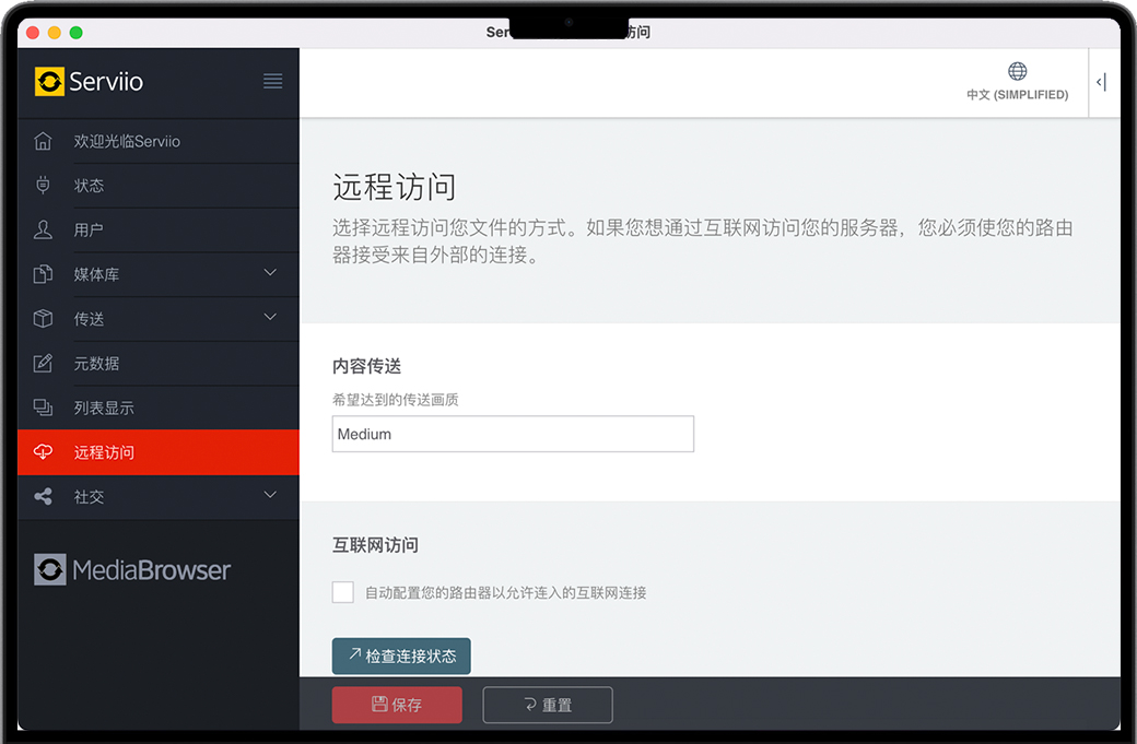 Serviio Pro for Mac 是一款DLNA媒体服务器。它允许您将媒体文件(音乐、视频或图像)流式传输到家庭网络上任何经DLNA认证的渲染器设备(如电视机、蓝光播放器、游戏机)。Serviio基于Java技术,因此可以在大多数平台上运行,包括Windows、Mac和Linux(包括嵌入式系统,如NAS)。