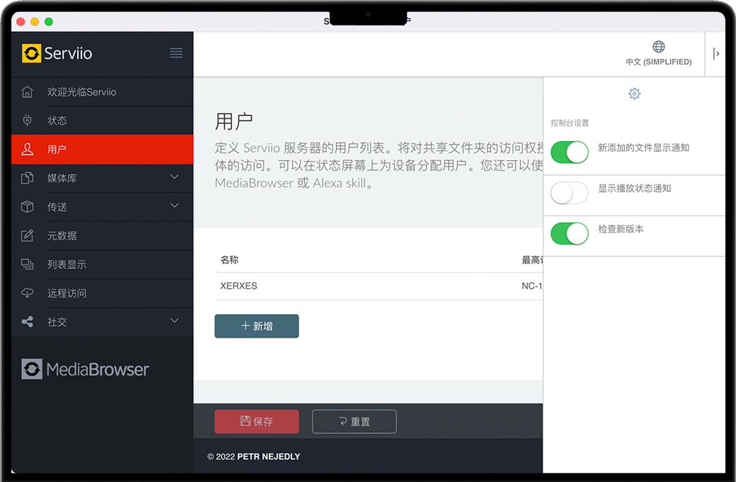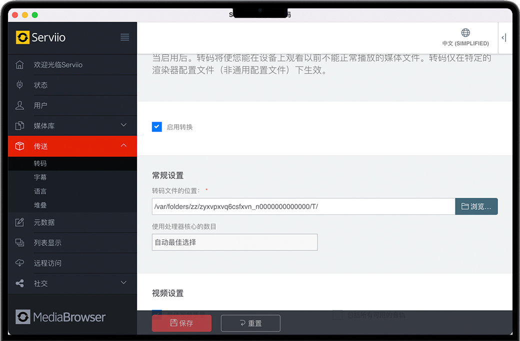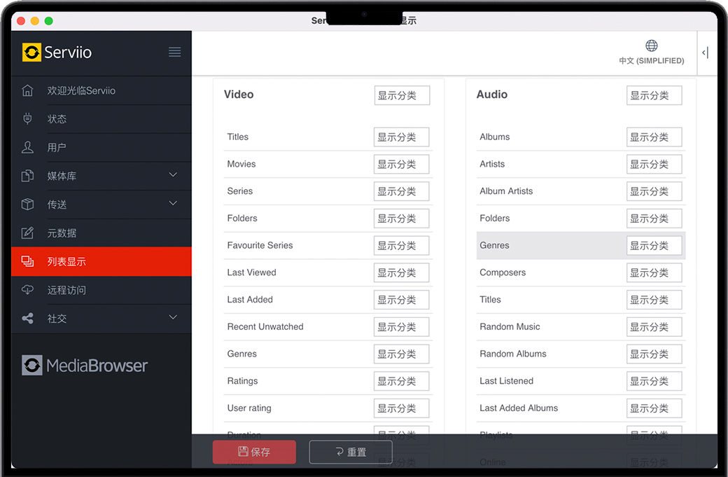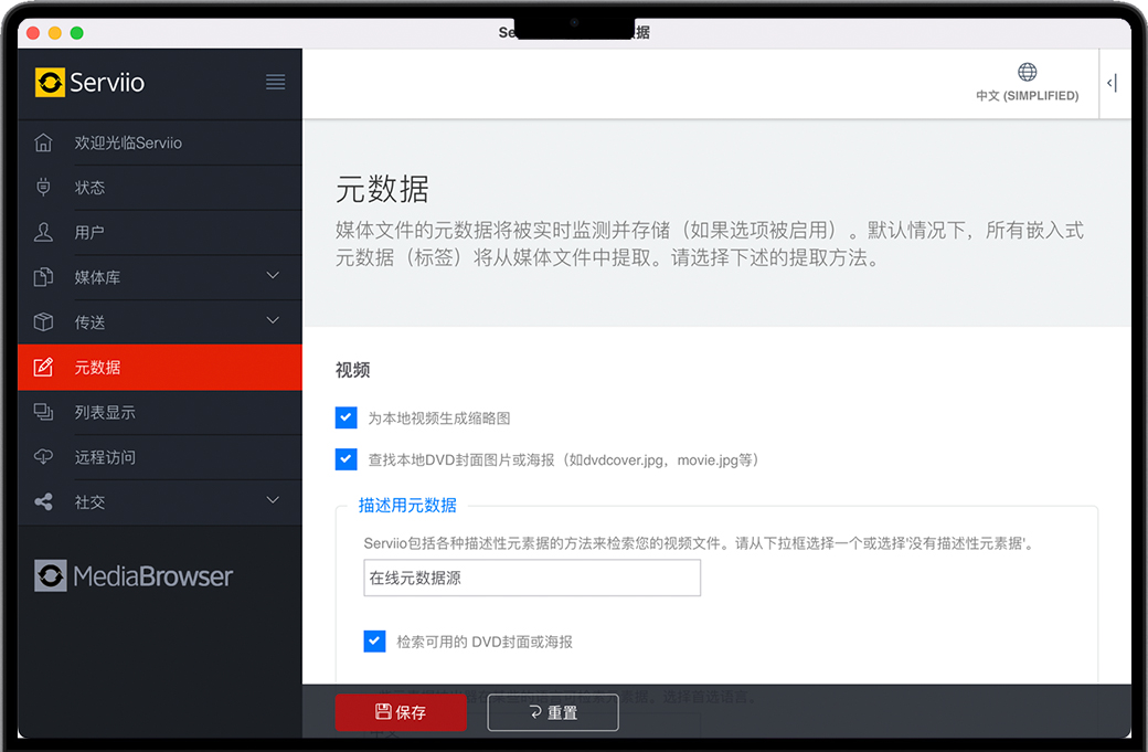 Serviio功能特征流式传输音频、视频(SD&HD)和图像文件的本地格式或实时转码 流式传输来自在线源的内容,如RSS提要、实时音频/视频流、网页内容 包括一个插件系统,用于支持来自非平凡在线源的流媒体 支持大多数已知的播放列表格式 支持字幕 添加/更新/删除媒体文件或元数据文件时自动更新媒体库 支持RAW相机图像 大量本地化的库浏览选项 支持不同的可编辑渲染器配置文件 支持自动渲染器检测和每个IP配置文件分配 以您想要的方式提取媒体文件的元数据,包括嵌入式元数据标签、本地元数据文件、在线元数据源(首选语言)、XBMC、Swisscenter、MyMovies 支持视频缩略图、CD封面、DVD海报等。 将视频文件分类为电影和/或系列,并标记系列的最后一集 与trakt.tv集成 Alexa技能可用 适用于Windows、Linux、Mac和多个NAS平台