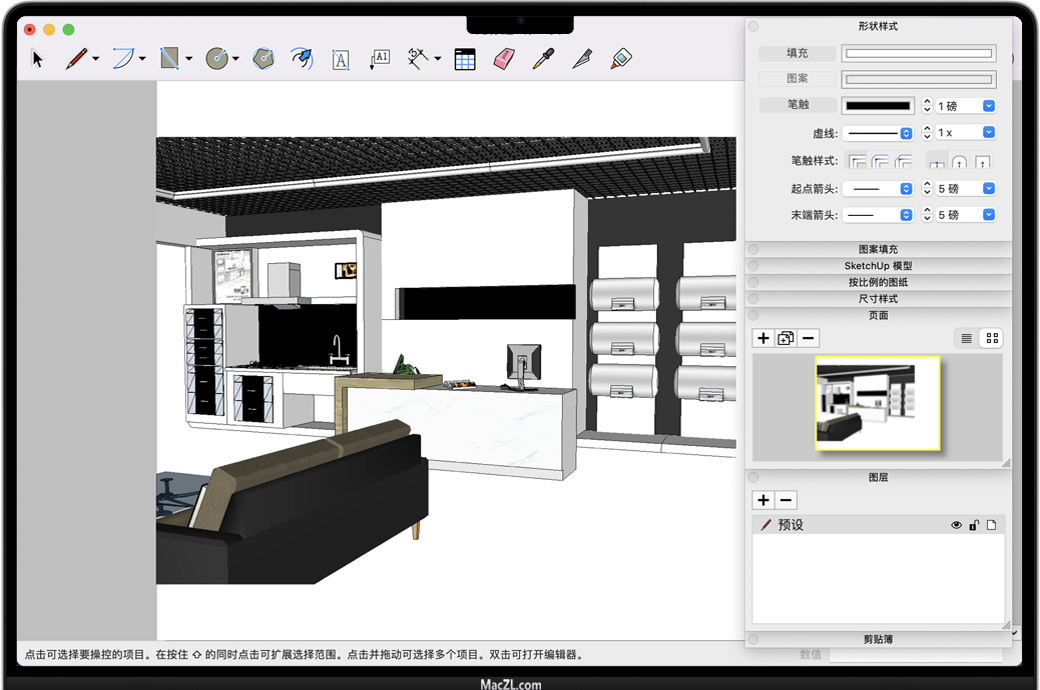 SketchUp Pro 2026 for Mac 是一款首屈一指的3D设计软件,日常唤作草图大师。可以真正为每个人制作3D建模,它具有简单易学但功能强大的工具集,可让您创建任何您能想象的东西。专为需要轻松构建和记录3D模型的工程师,架构师和设计人员而设计。专业用于3D建模软件,设计,创建和交流建筑,施工,工程等方面的创意。