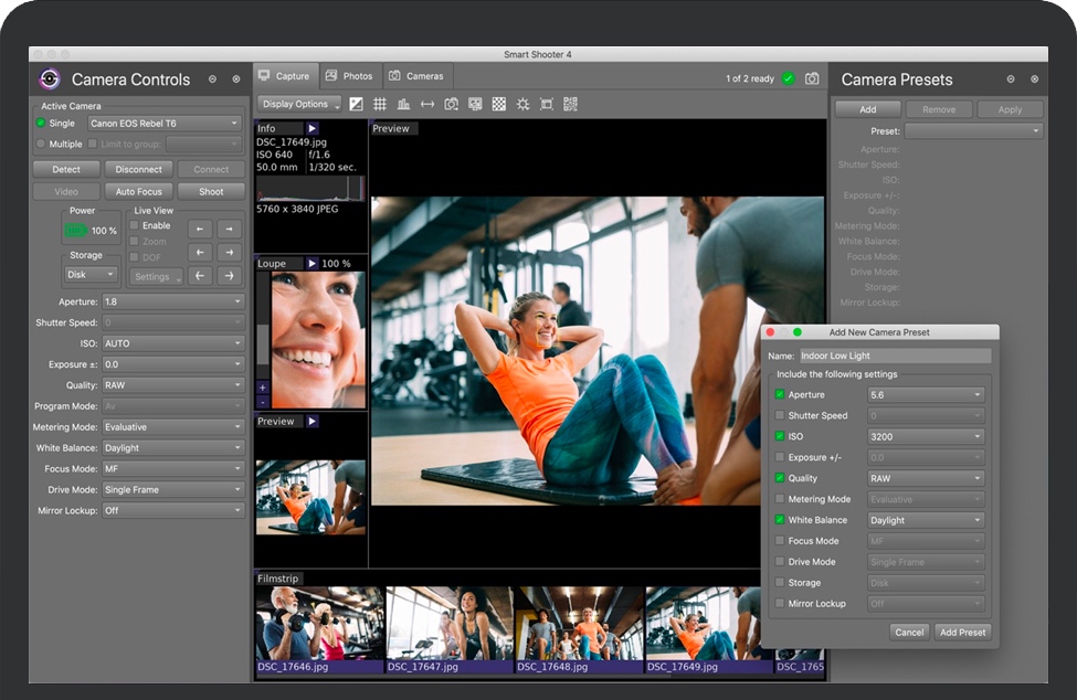 Smart Shooter 4 for Mac 通过重新设计的用户界面为大多数佳能,尼康,索尼和理光相机提供系留捕捉功能,从而为您的系留需求提供速度和性能。使用随附的插件直接绑定到Lightroom Classic。在Tether Tools支持的支持下,我们相信Smart Shooter是同类最佳的Tether实用程序。Smart Shooter 4适用于专业摄影师和业余摄影师。