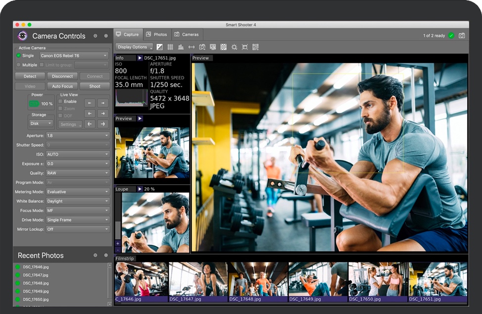 将相机连接到计算机后,您可以继续手动使用它。每次拍摄照片时,Smart Shooter 4都会下载图像并将其显示在屏幕上。