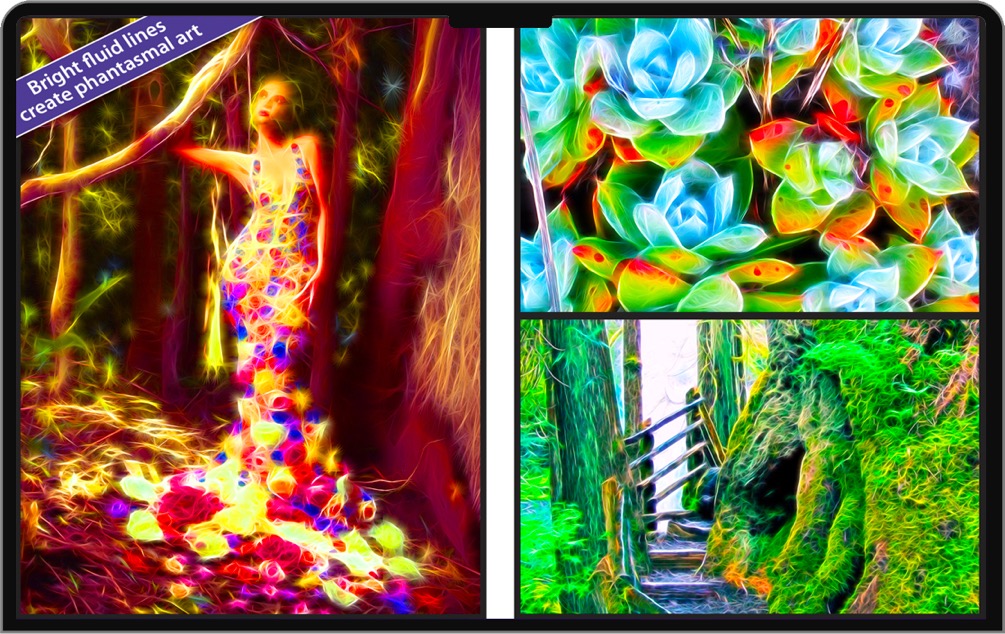 Spektrel Art 具有明暗风格。浅色与白色锥形光一起闪烁,而深色则与黑色相交线条形成鲜明对比。每种风格都可以让您用发光的颜色夸大它们,并柔化或平滑艺术形式,以获得各种超凡脱俗的乐趣和富有想象力的图像。