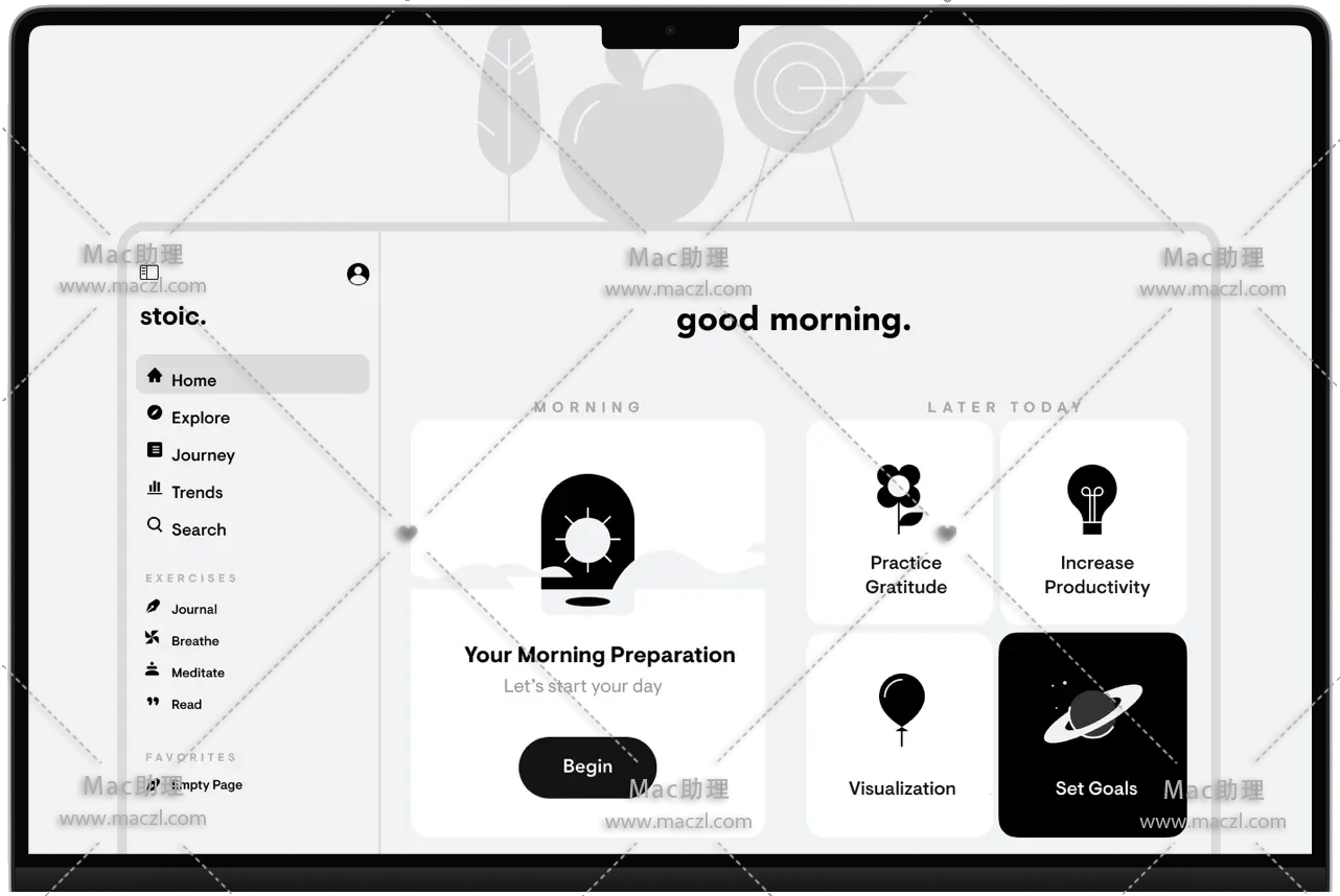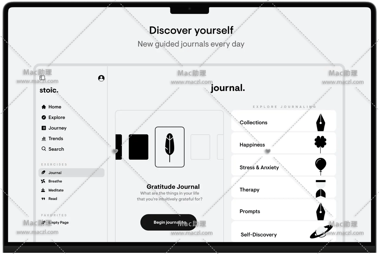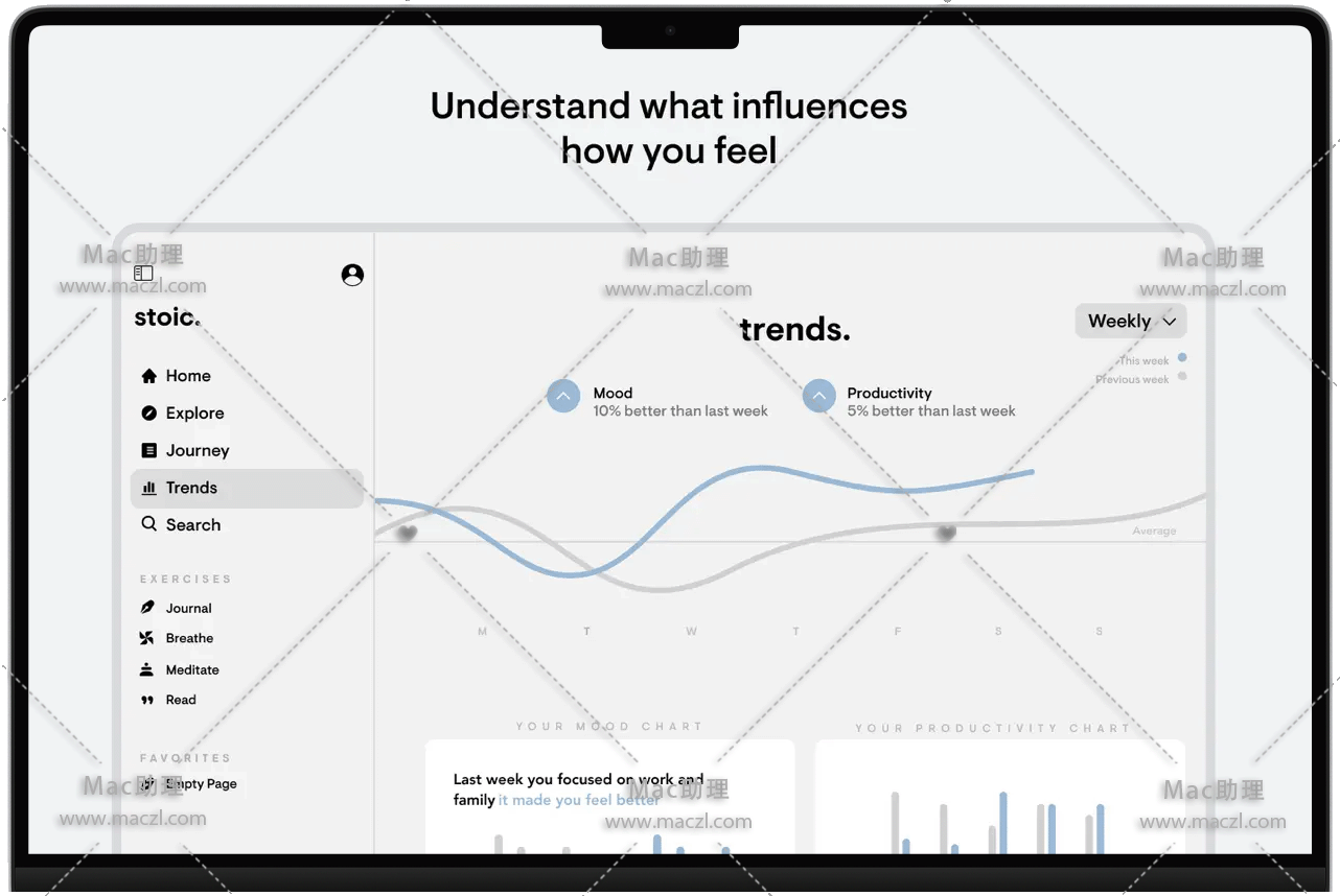 Stoic for Mac是你的心理健康伴侣&它帮助你了解自己的情绪,并提供如何变得更快乐、更有成效和克服障碍的见解。