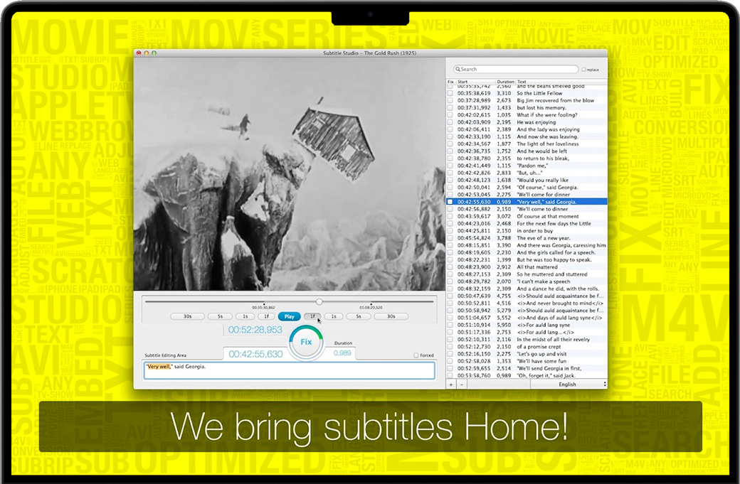Subtitle Studio for Mac 通过将完整的工作流程集成到一个超级强大且易于使用的应用程序中,将整个字幕方法提升到一个新的水平。在不到一分钟的时间内,您就可以为您的电影制作一个完美的字幕。这是第一个令人上瘾的乐趣的字幕工具。Subtitle Studio是您唯一需要的字幕解决方案:查找、调整、编辑、创建、嵌入。一个应用程序中的一切——我们才刚刚开始。以原始语言观看电影很棒。字幕帮助每个人欣赏电影。使用Subtitle Studio,就像1-2-3一样简单,甚至更简单。