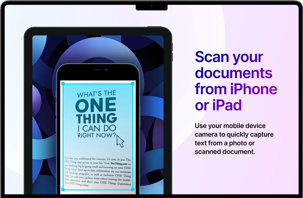 • 从图像,PDF文档,照片,缩放会议或任何其他来源读取文本。