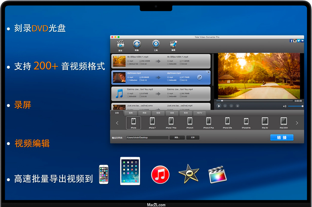 批量转换视频和音频文件到iPhone, iPad, iTunes, PS Vita, iMovie, Final Cut Pro。