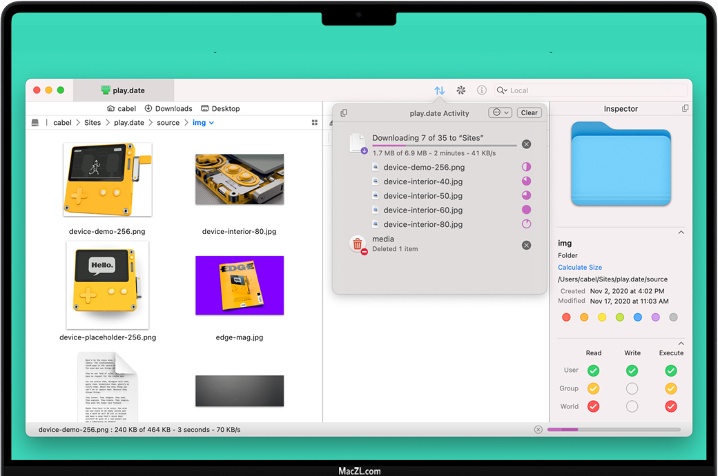 Transmit 5 for Mac 在多线程处理方面表现更佳,同时在处理复杂文件夹时更加智能。