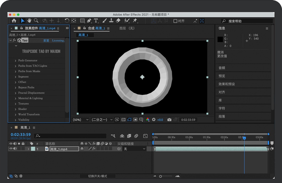 Tao使用内置的自动路径、遮罩形状和来自After Effects 3D灯光的运动快速生成程序化的3D几何图形。