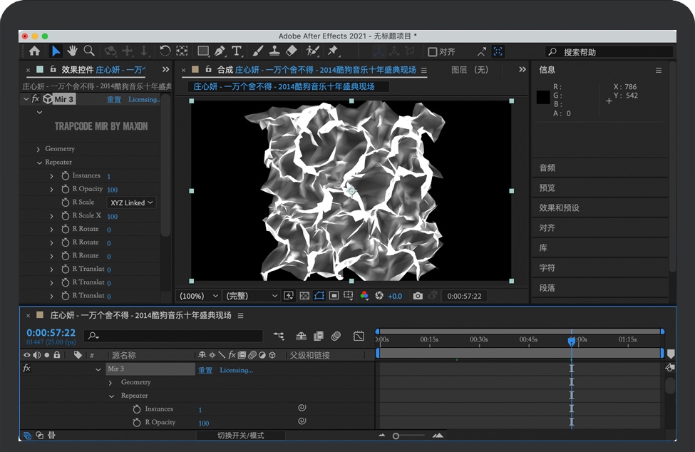 Trapcode将3D粒子系统的力量直接带入After Effects。使用粒子发射器创建火、水、烟、雪和其他有机视觉效果,或使用不朽的粒子网格和3D形式创建技术奇迹和用户界面。由于Cineware .c4d文件的导入,可以获得更多的3D几何体输入选项。在粒子系统中使用Cinema 4D文件(包括动画),或在After Effects中作为3D模型使用。