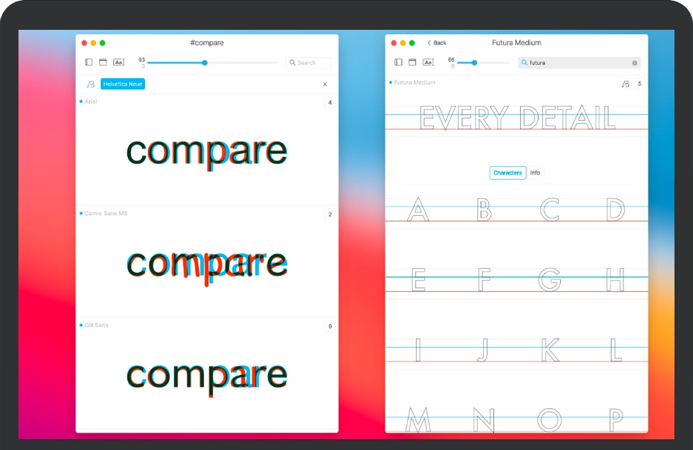从高级 OpenType 过滤器到比较字体:每项功能都经过精心设计,让管理字体变得更轻松、更有趣。