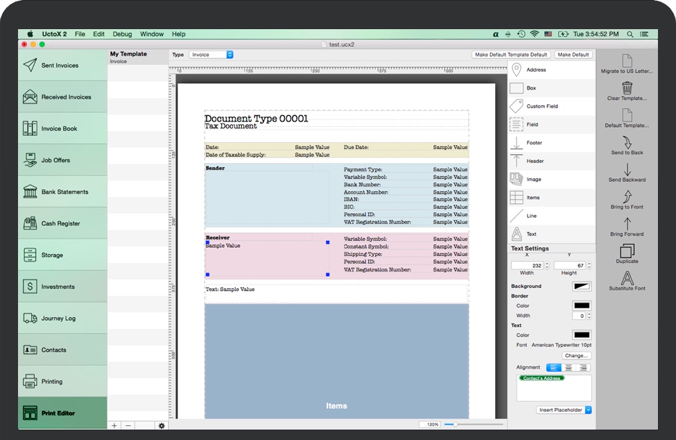 UctoX 2 for Mac 是一个功能强大但易于使用的发票应用程序-以及更多!与其他发票应用程序不同,它还包含会计应用程序的功能:您可以管理银行对帐单,收银机,存储,旅途记录等等!它带有3个内置打印模板,但是使用打印编辑器,您可以轻松创建自己的模板!