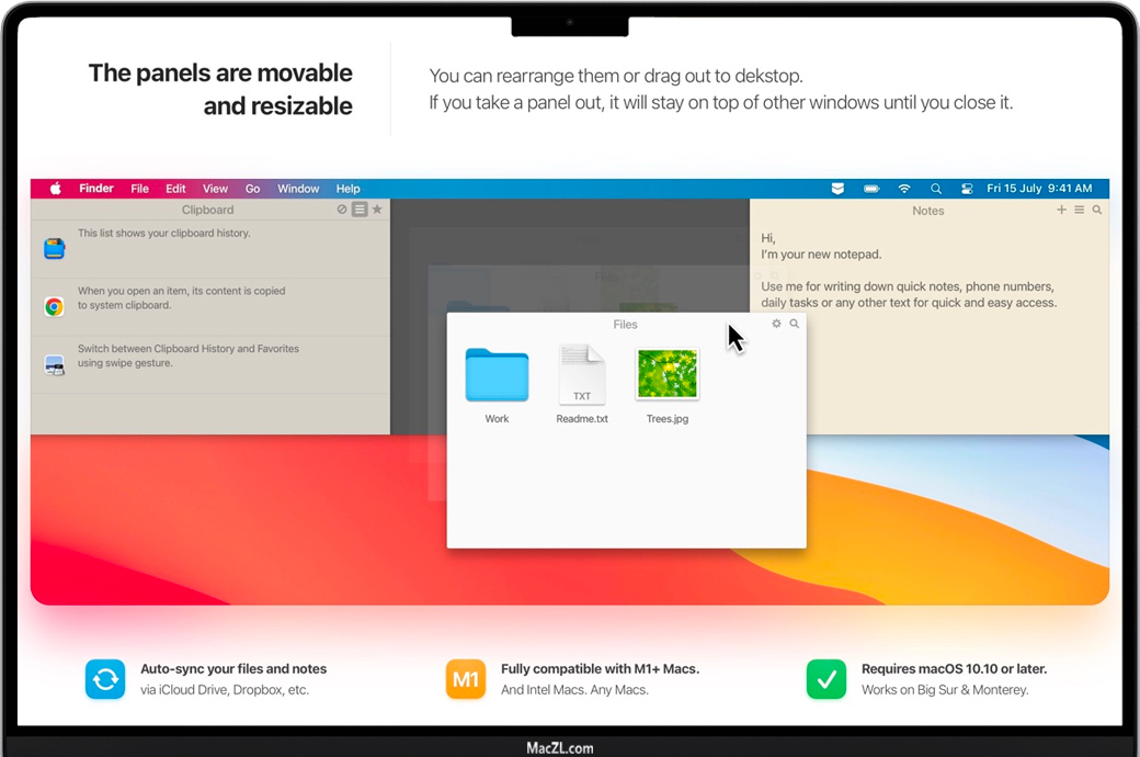 不用创建临时文件夹和放置临时文件。Unclutter Files是一个即时可用的“目的地”,用于临时存储,经常使用的文件,或者只是在应用程序之间拖动文件的放置区。