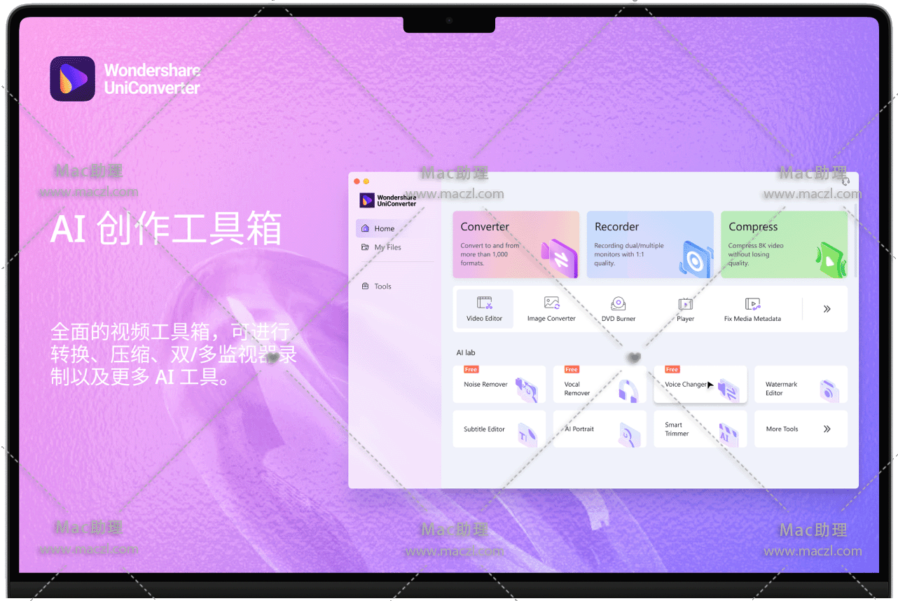 UniConverter 15 for Mac是一站式专业的音视频解决方案,任何媒体文件和内存的一站式视频转换器:转换,压缩,编辑,刻录1000多种格式的视频,制作GIF,刻录CD等。还有一个强大的工具箱,里面包含:图片格式转换器、视频/图片转GIF、编辑修复媒体Meta元数据、无损压缩视频、视频转VR格式、CD烧录器、IOS/DVD光盘复制、CD翻录、屏幕录像、投放视频到电视。功能非常强大,是一款必备软件。
