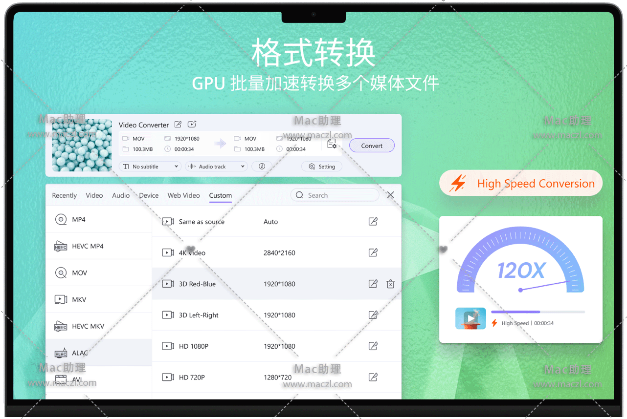 - 将任何视频/音频文件转换为MP4,MOV,AVI,MKV和其他1000多种格式。