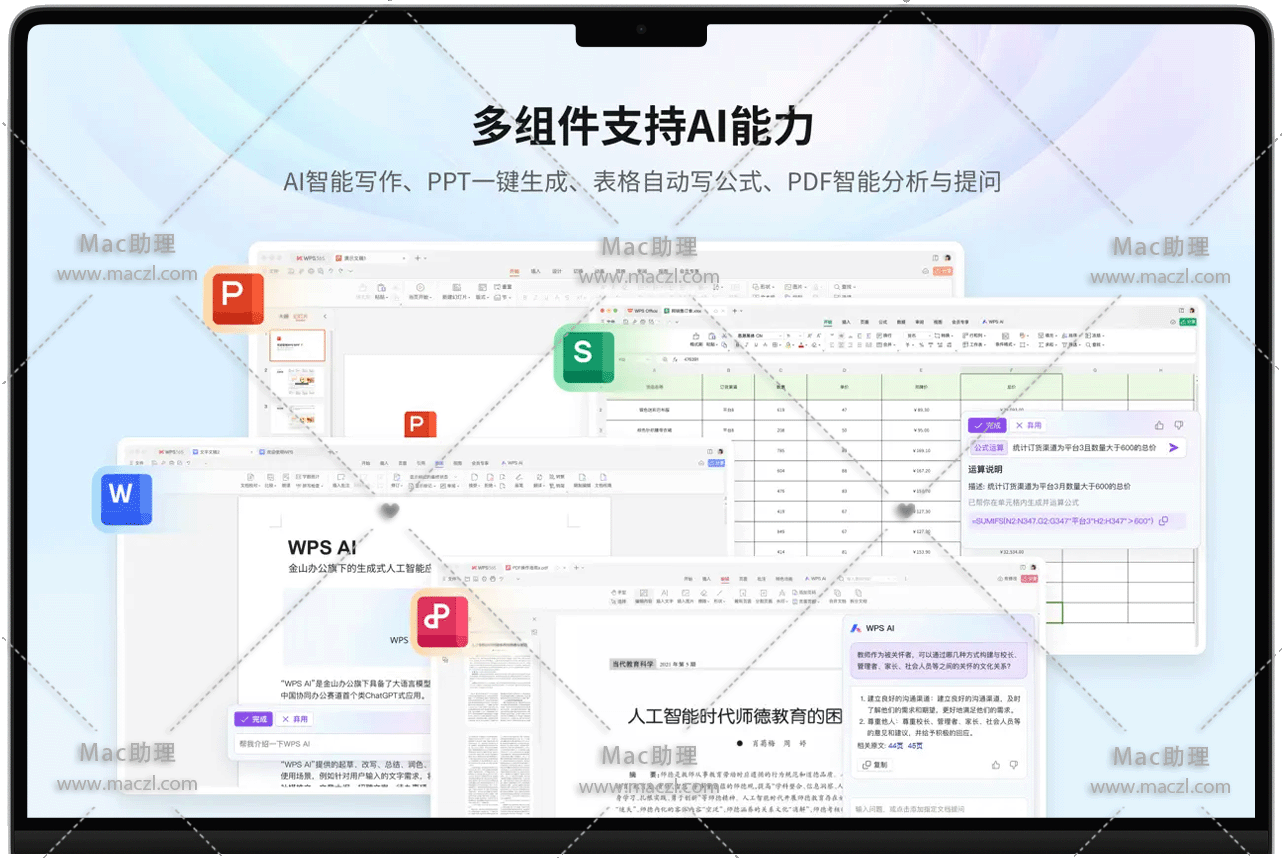 WPS Office for Mac 金山软件公司发行可以实现办公软件最常用的文字、表格、演示等多种功能。WPS Office for Mac具有内存占用低,运行速度快,体积小巧。WPS Office for Mac具有强大插件平台支持,免费提供海量在线存储空间及文档模板,支持阅读和输出PDF文件,全面兼容微软Office格式(doc、docx、xls、xlsx、ppt、pptx)。