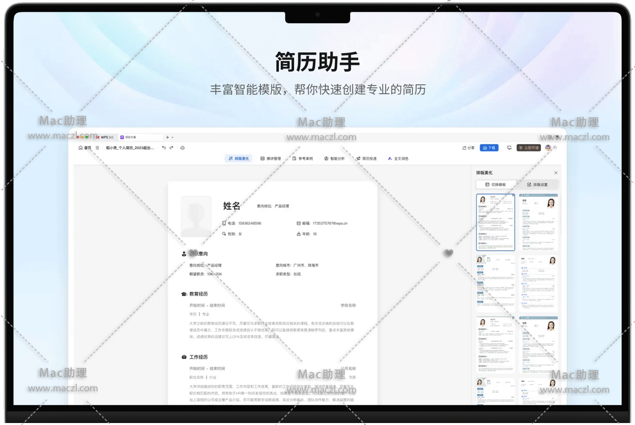 WPS Office For Mac提供了成千上百种模板,一键就可以轻松应用在幻灯片上,