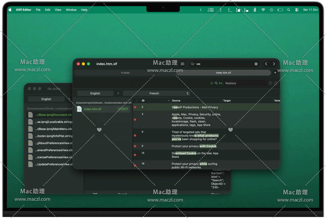 Xliff Editor for Mac-加载速度快,易于使用,内存占用低。Xliff Editor内联标签保护、搜索和;替换、正则表达式搜索、模糊搜索、直观快捷方式、多个并发文件编辑和本地拼写检查器。它还有一些非常好的自定义设置,您可以使用它们来更好地适应您的工作流程。