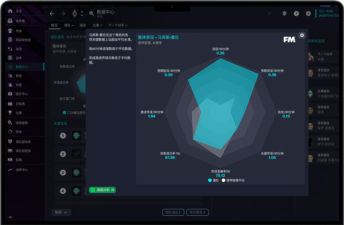 优化了球员属性的分配——作用于新生球员的生成与成长(例如:边后卫的传中属性)