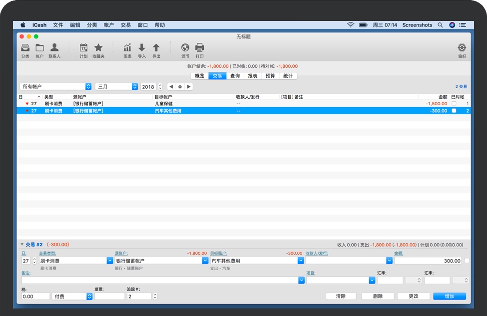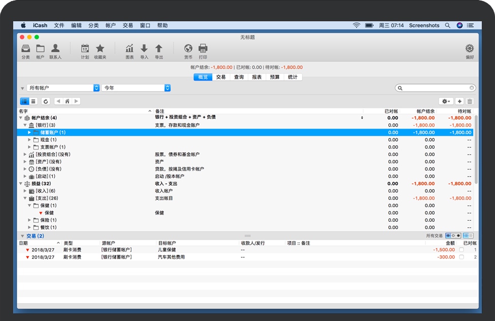 iCash for Mac 是一款易于使用、功能齐全且用途广泛的个人理财软件,旨在帮助您控制各种资金问题。iCash可以满足私人用户、俱乐部、协会、个体经营者、小型企业或仅在家中使用的多种小型会计需求,从而轻松跟踪收入、支出和银行交易。iCash只需点击几下,您就可以在几分钟内开始创建帐户和进行交易。
