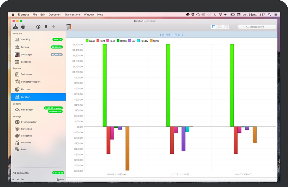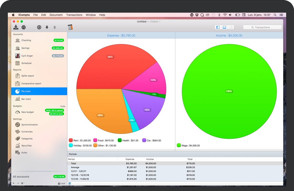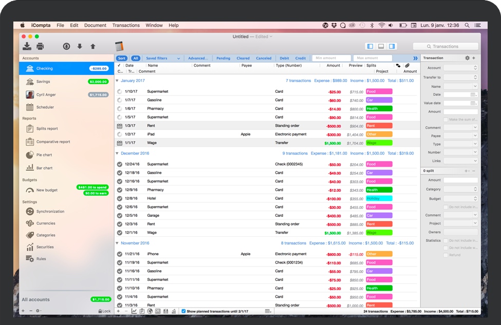 iCompta for Mac 是一款可让您轻松管理帐户的应用程序。跟踪收入和支出,安排帐单,与预算保持一致,并通过精美的图表最终了解所有资金的去向。