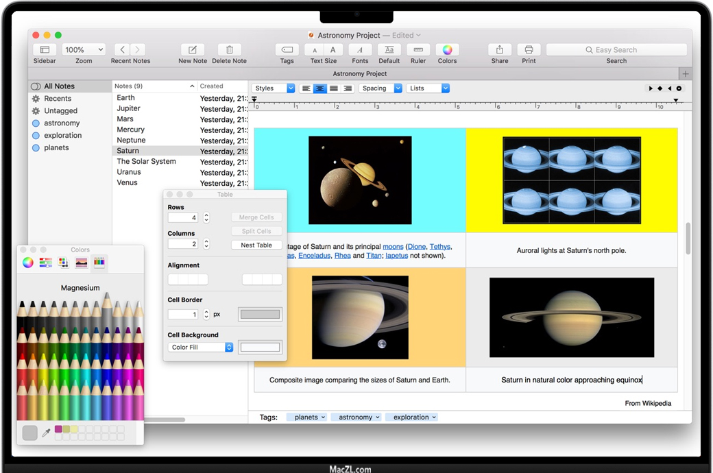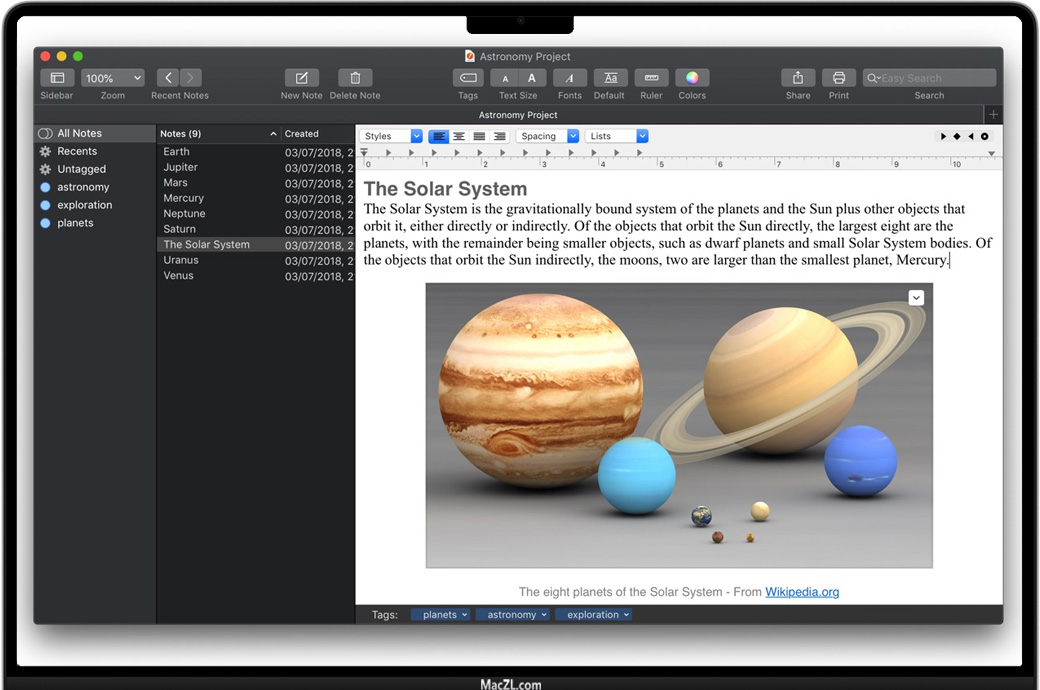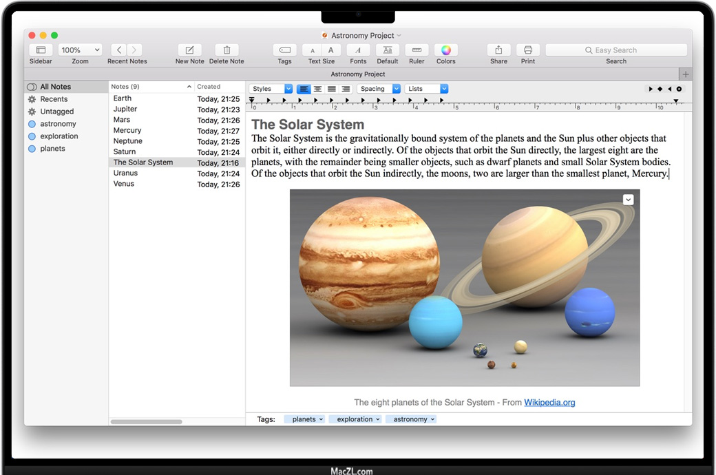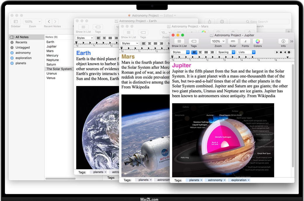 优化您的工作,使您可以从Finder和其他应用程序中进行广泛拖放。轻松安排,管理和组织大量笔记和文本,并允许您在需要时快速找到它们。