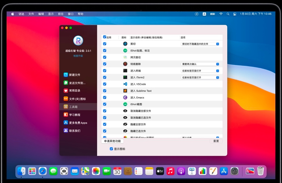 超级右键是Mac上最强大的右键菜单工具,丰富的功能,让你的右键菜单如虎添翼,深入人心的交互设计,助你大幅提升macOS使用体验!