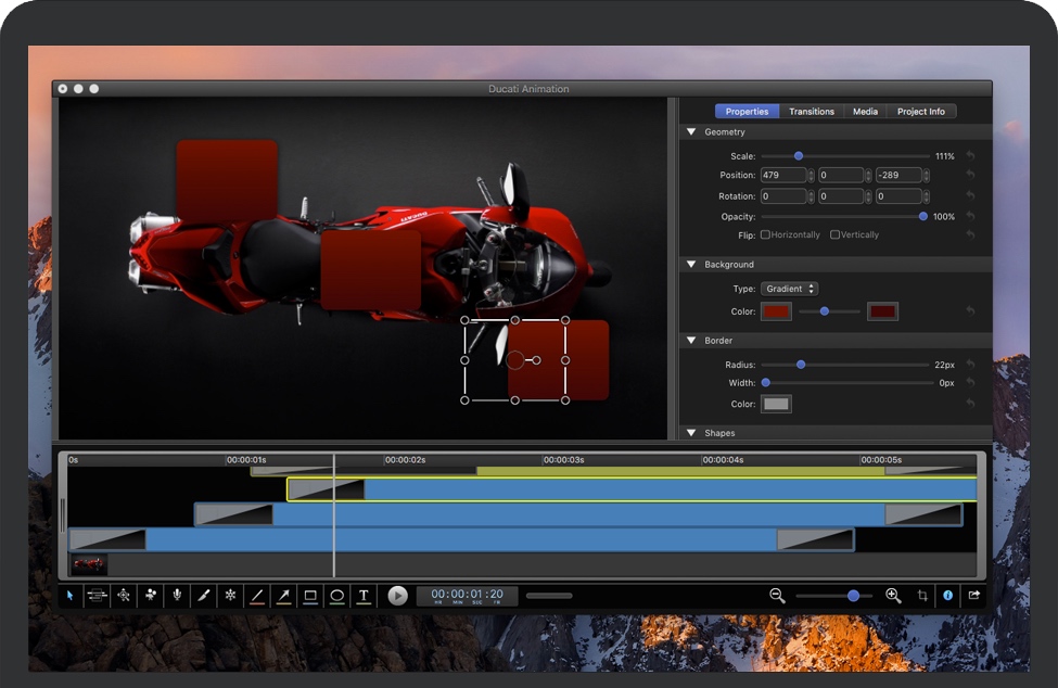 iShowU Studio 2知道带有颜色标记的素材,可以为您提供从导入,预览到最终渲染的精确结果。