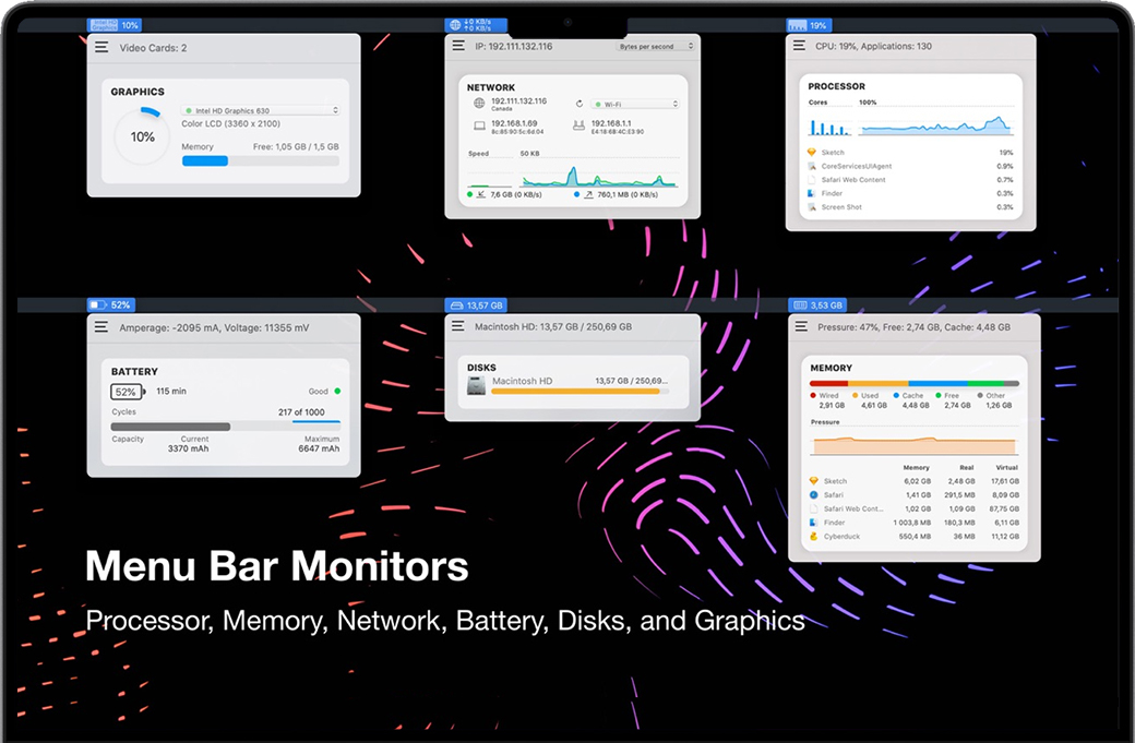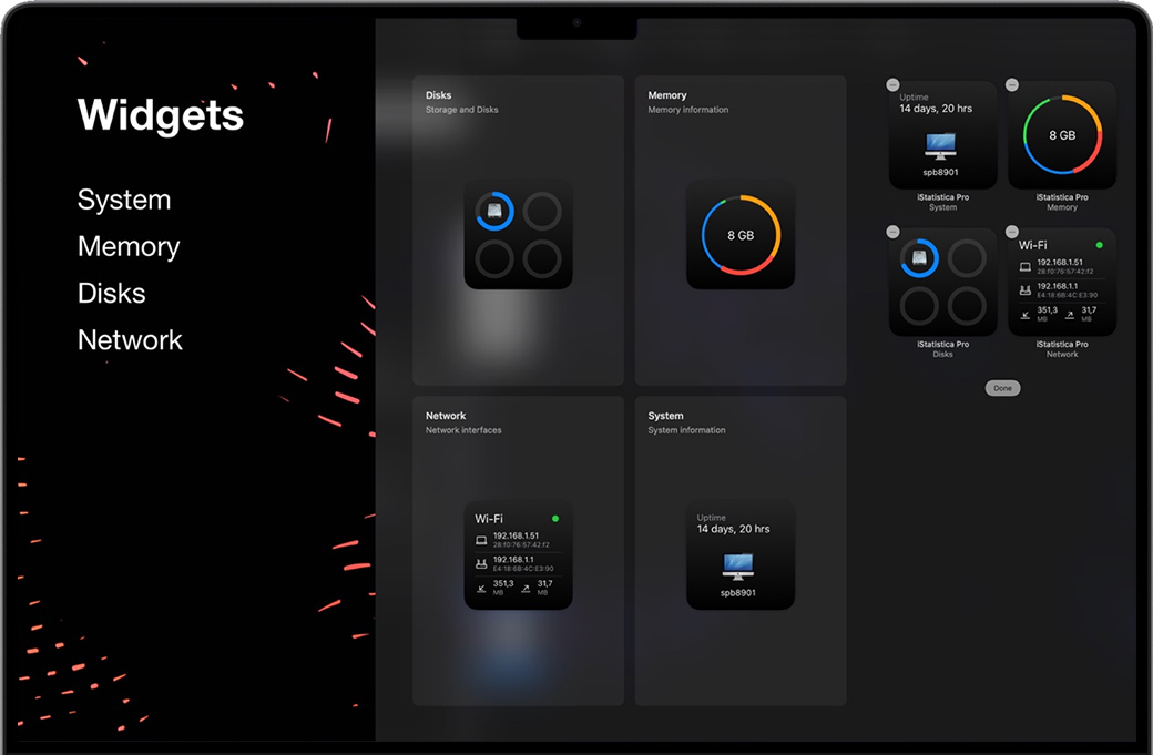 iStatistica是用于macOS的高级系统监视器。它包括通知中心小部件和状态栏菜单。只需滑出Notification Center,即可关注您的CPU,内存,磁盘使用情况和网络活动。