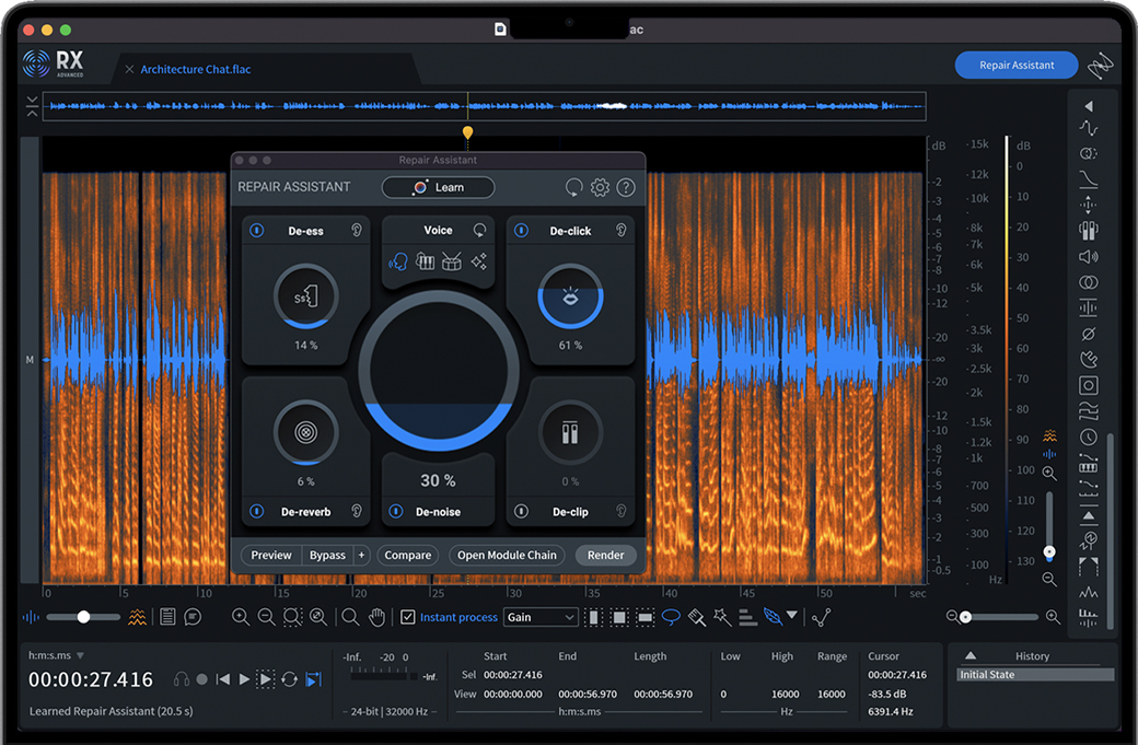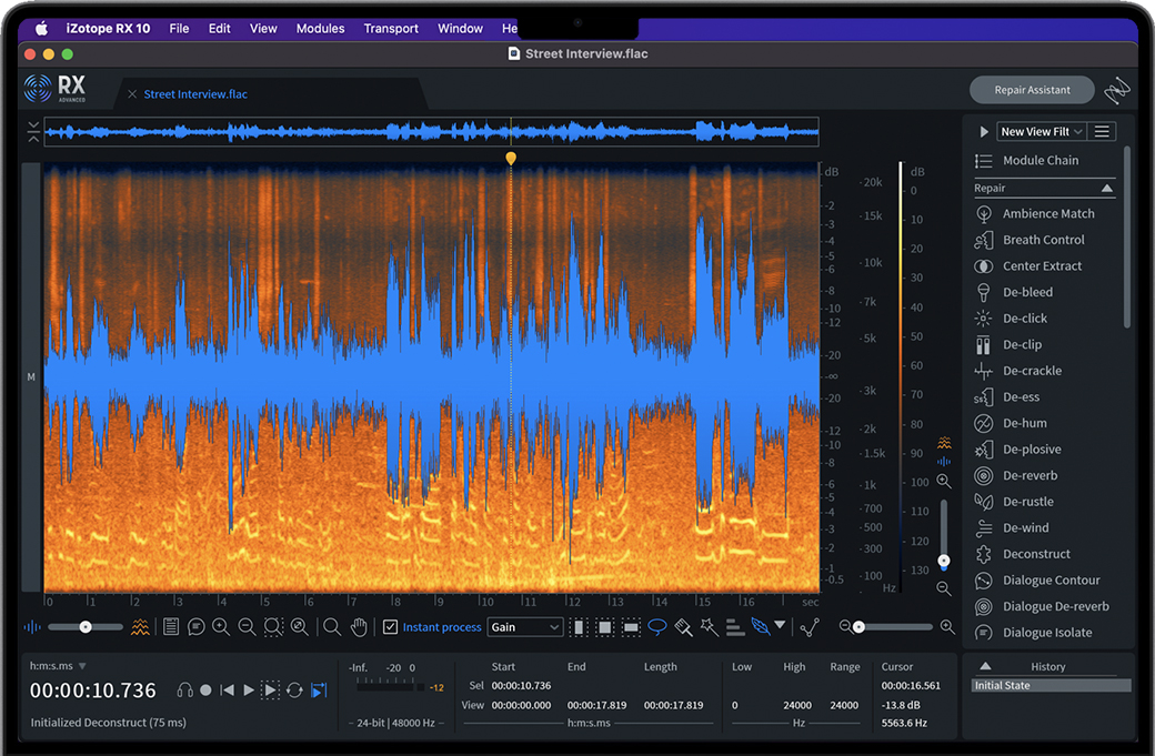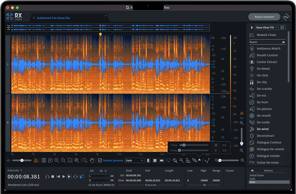 iZotope RX 10 Advanced for Mac 是一款屡获殊荣的音频修复套件,深受领先的后期制作工程师的信赖,可快速可靠地为专业发行准备录制的音频。通过语音导航,重新合成丢失的频率,以及更多功能–支持多通道(最多10个通道)。iZotope RX 10提供了一套全面的工具,专注于缓解常见到复杂的音频问题。后期制作专业人员、音频工程师和视频编辑都使用RX将有问题的录音转换为可制作的音频。