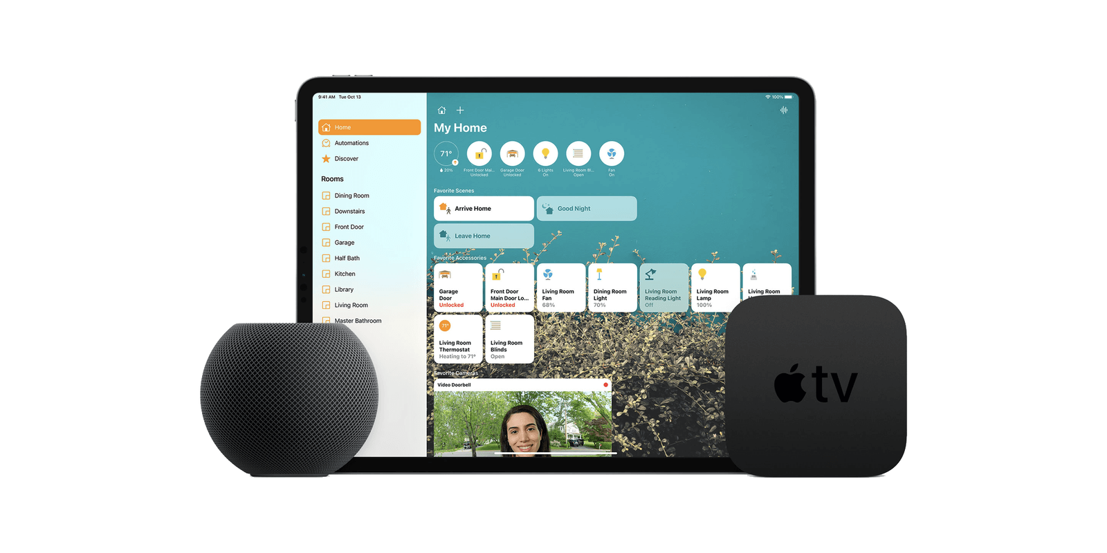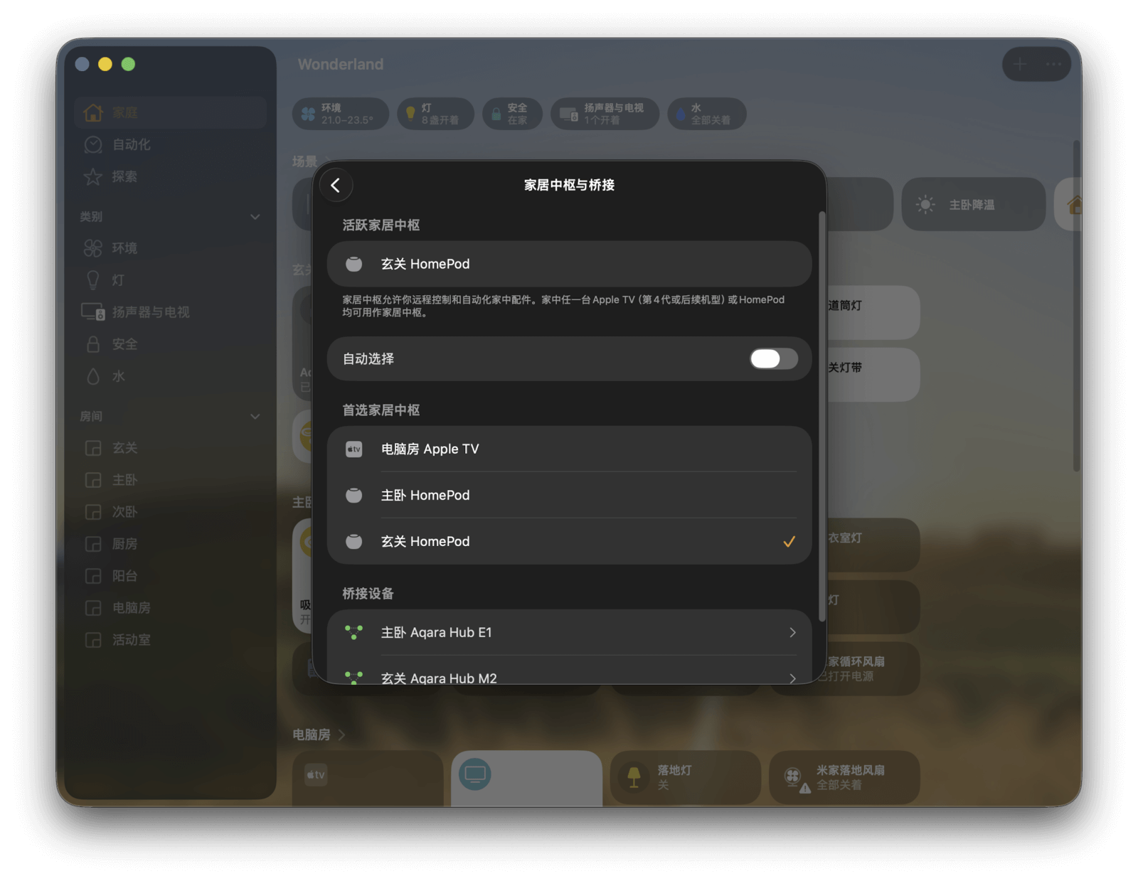 对此,Apple 引入了「家居中枢」的概念。通过在家里设置一个家居中枢,它能为局域网内的 HomeKit 设备提供远程中继、自动化等功能,这样你就能在外通过端到端加密的形式访问家中的设备了。