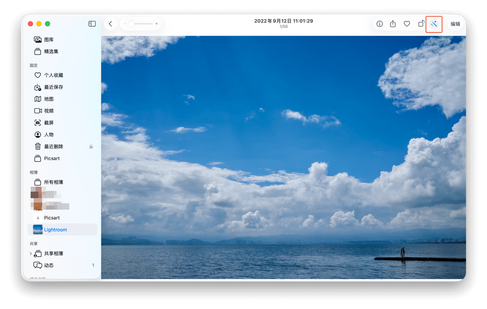 在照片应用中打开任意一张照片,就可以在界面的右上角看到一个像魔术棒一样的按钮,它就是「自动增强」功能。点击后,应用会利用人工智能技术分析照片,并自动调整光效、颜色等参数,以达到理想的视觉效果。