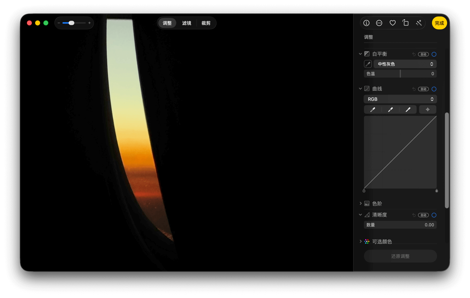如果你对调整结果不满意,可以点击调整面板最下方的「还原调整」按钮,将照片复原。