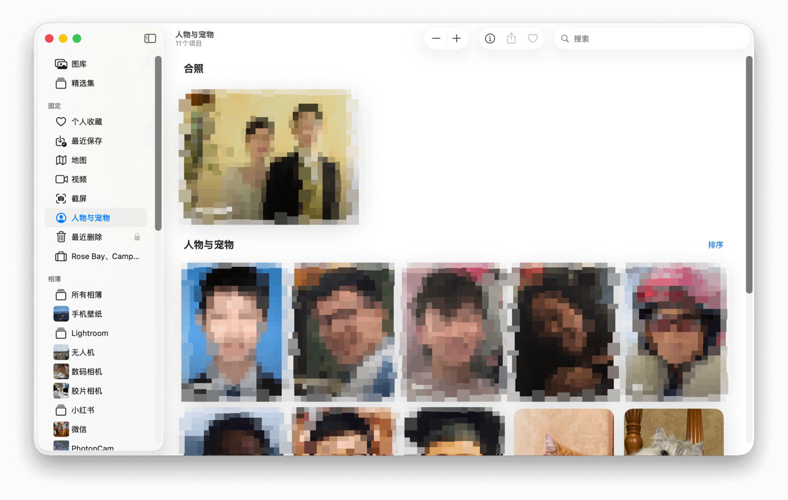 苹果利用机器学习技术在本地分析照片,识别其中的人物面孔并加以分组。对于已识别出的人物,你可以为其命名、标记为个人收藏,或确认更多相关照片。