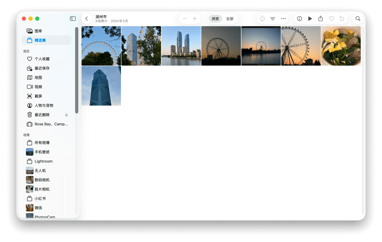 因为这些精选集是根据图库照片自动生成的,所以当图库内容变化时,精选集也可能随之改变。如果你想长久保留或方便浏览某个喜欢的精选集,可以直接将其拖拽到侧边栏的「我的相簿」下。此时,照片应用会自动创建一个同名相簿,并导入该精选集中的所有照片。