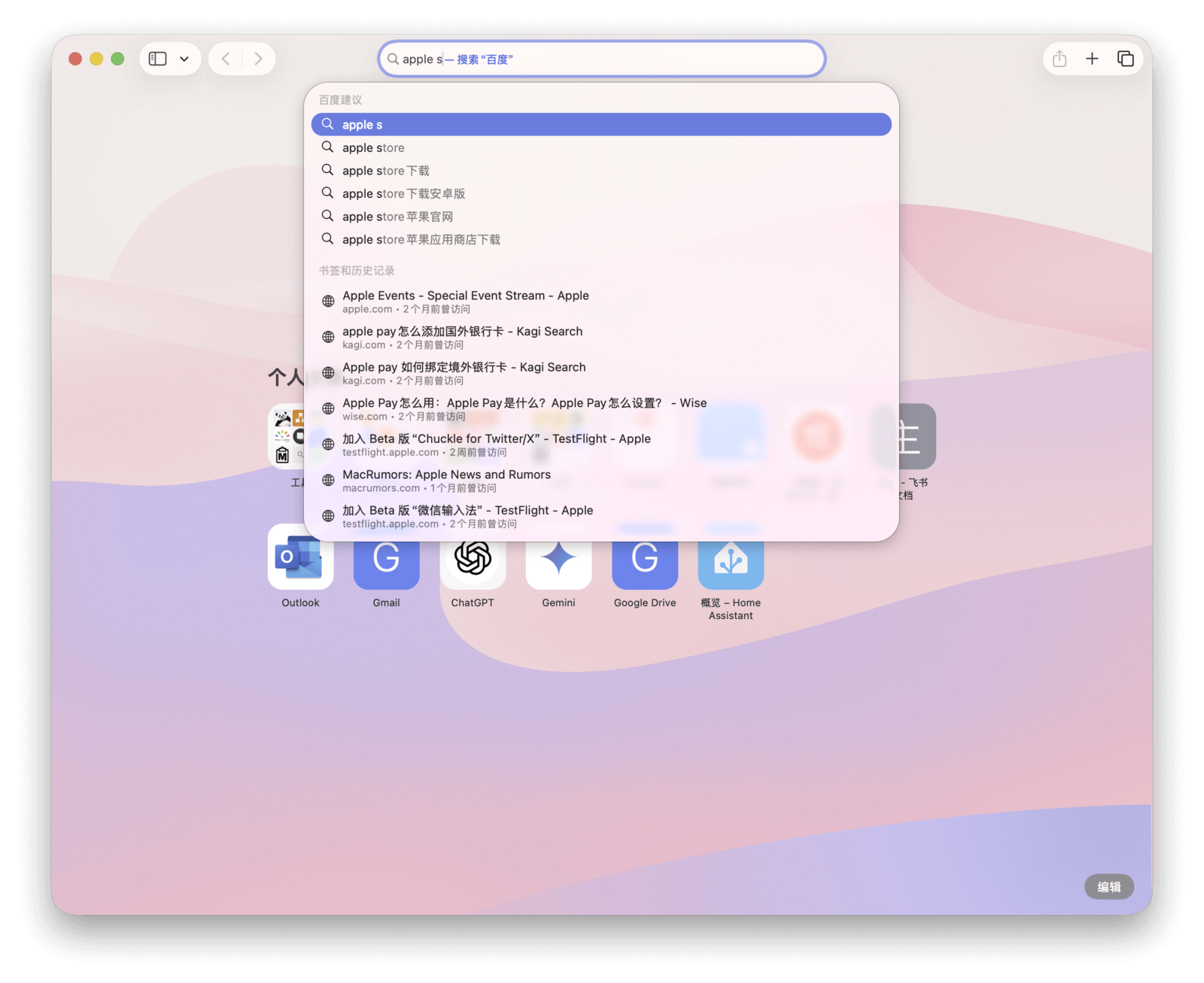如果你留心观察,会发现 Safari 的搜索建议比第三方浏览器更为规整和丰富。当你输入内容时,它会综合「最常点选」、「搜索引擎建议」、「书签和历史记录」等多个维度给出建议。如果输入的内容与已打开的标签页相关,还会显示「切换到标签页」的直达链接。