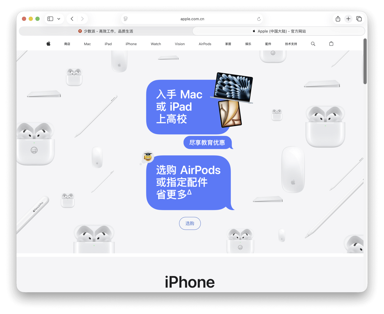 选中建议或输入完毕后,按下回车,即可快速前往对应的结果页面。当需要浏览多个网页时,点按 Safari 工具栏中的「+」按钮即可新建标签页。