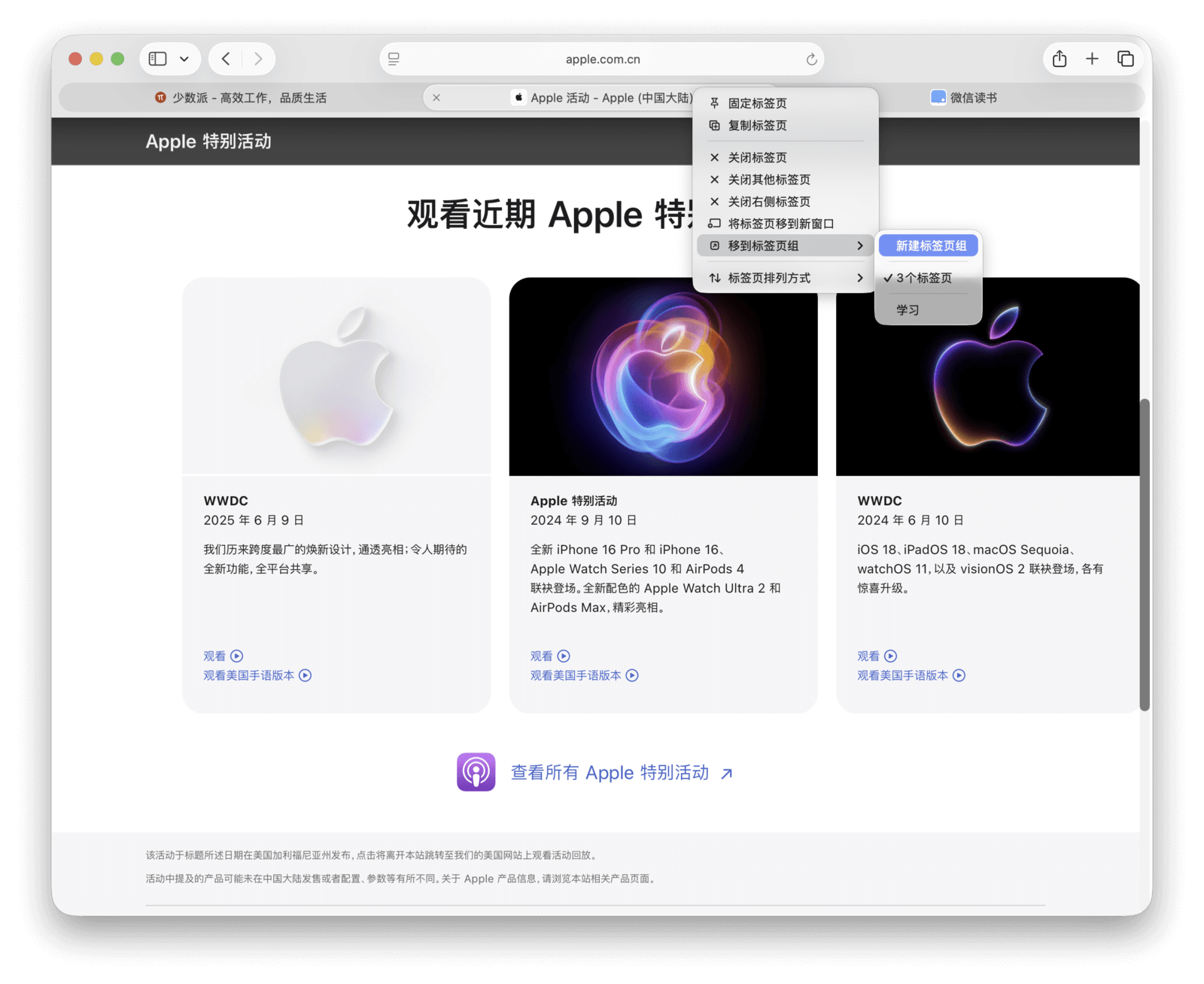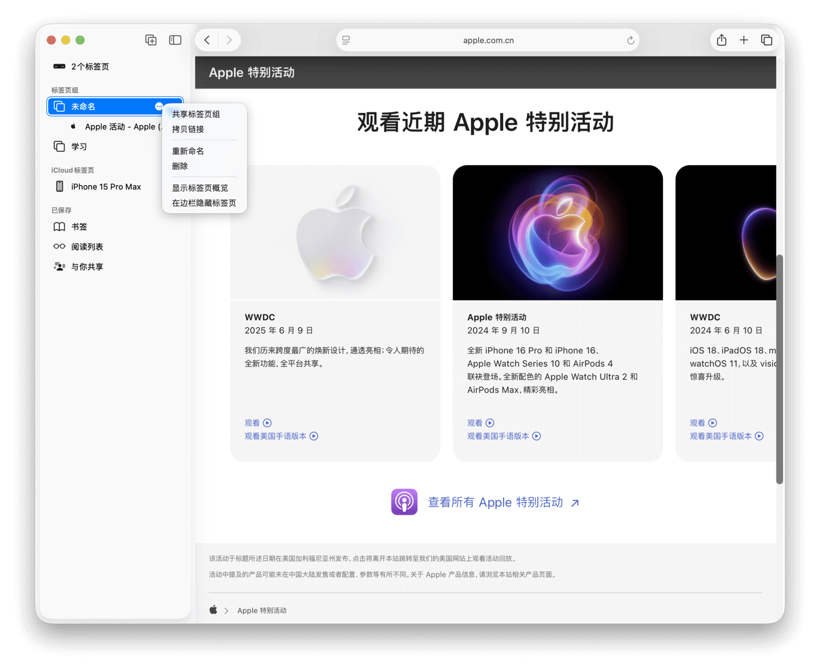 在 macOS 的新版本中,苹果继续强化了标签页分组的相关功能。