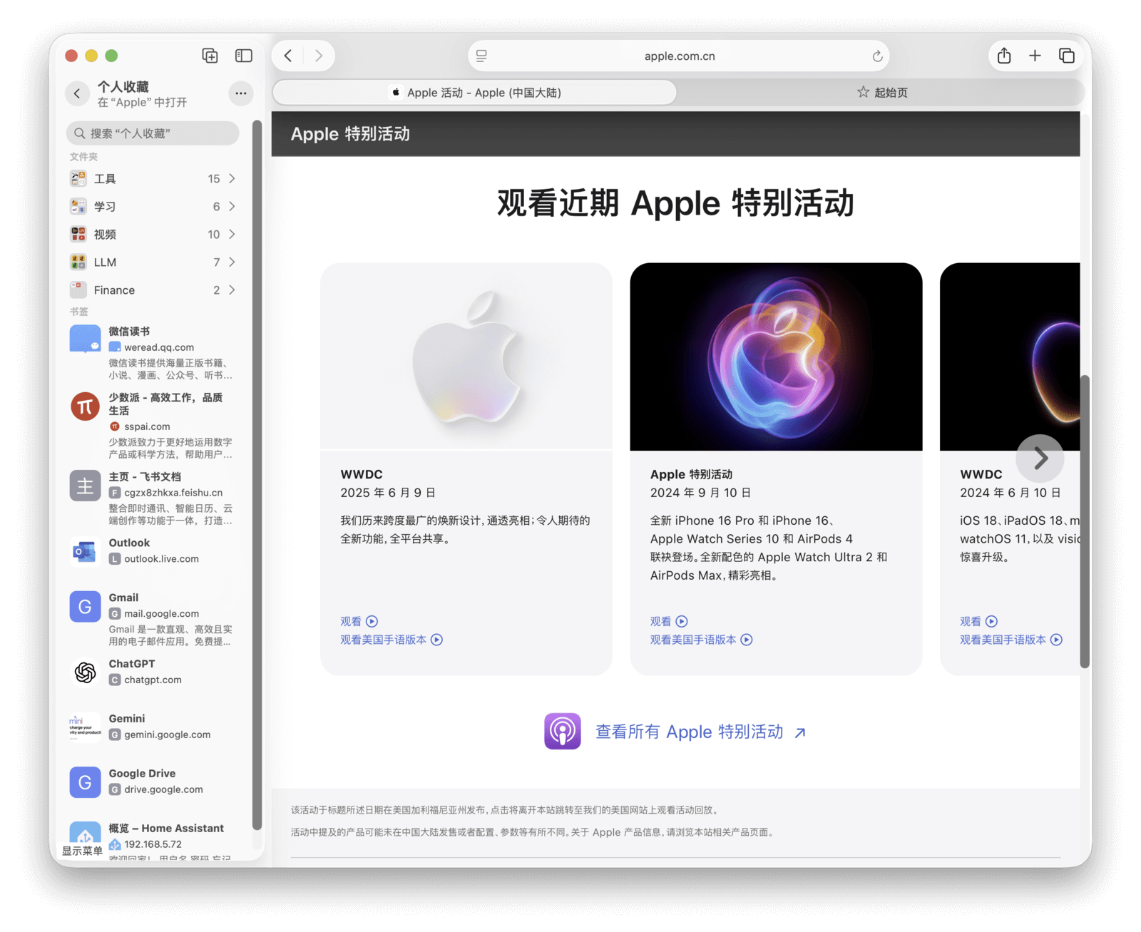 书签:点击浏览器工具栏的共享按钮,在下拉菜单中选择「添加书签」,即可将当前网页添加到书签列表。需要访问时,可以通过菜单栏的「显示」>「显示个人收藏栏」来快速打开书签栏。