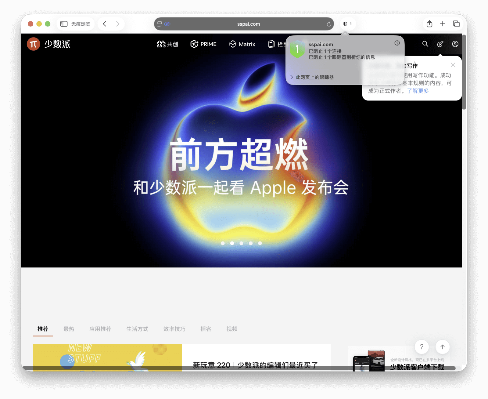 无痕浏览(隐私浏览)是目前主流浏览器的标配功能。注重隐私安全的苹果,在 macOS Sonoma 版本中也进一步强化了 Safari 的无痕浏览体验。
