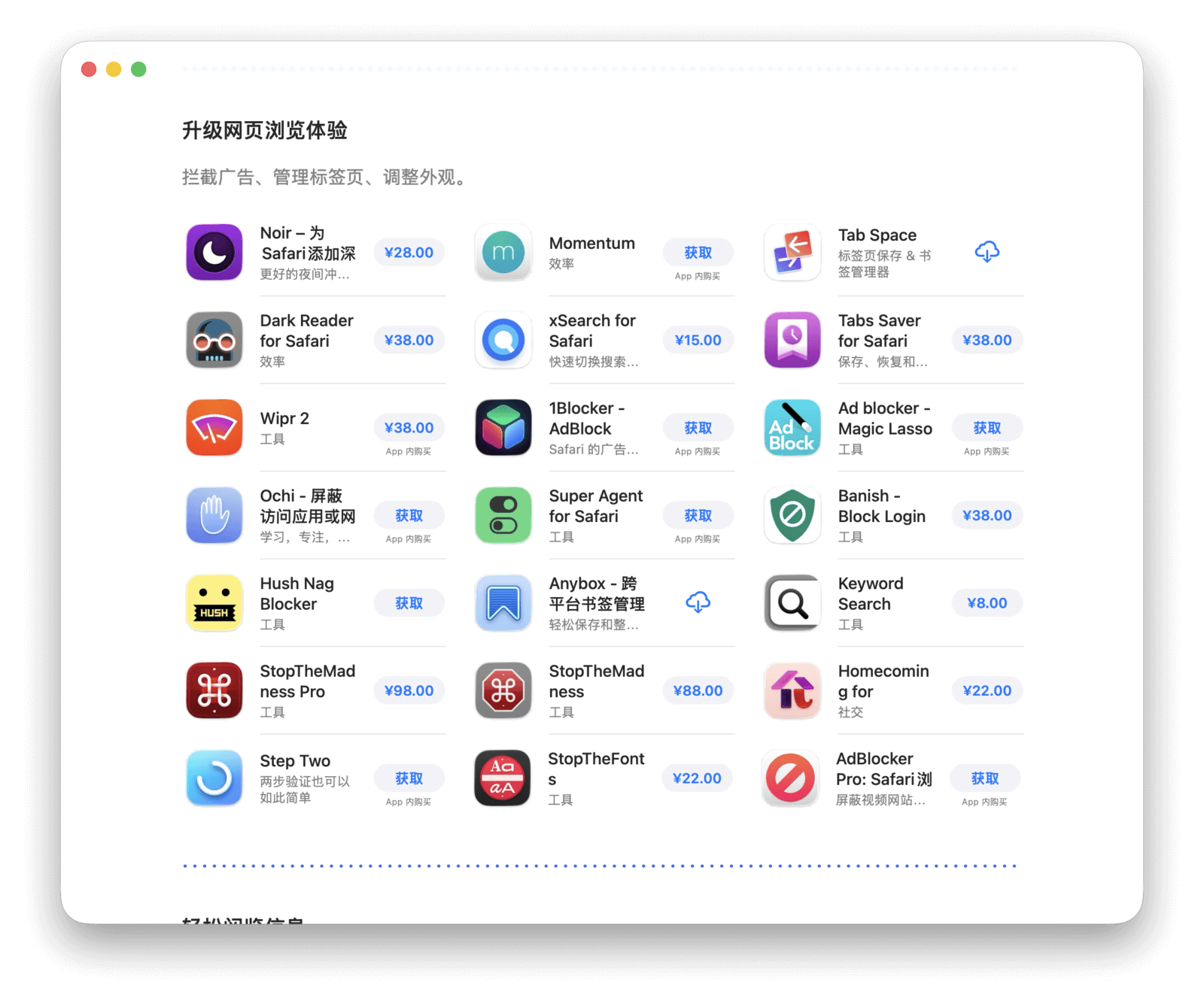 找到想要的扩展后,点击显示「获取」或价格的按钮,然后再次点按即可安装或购买。