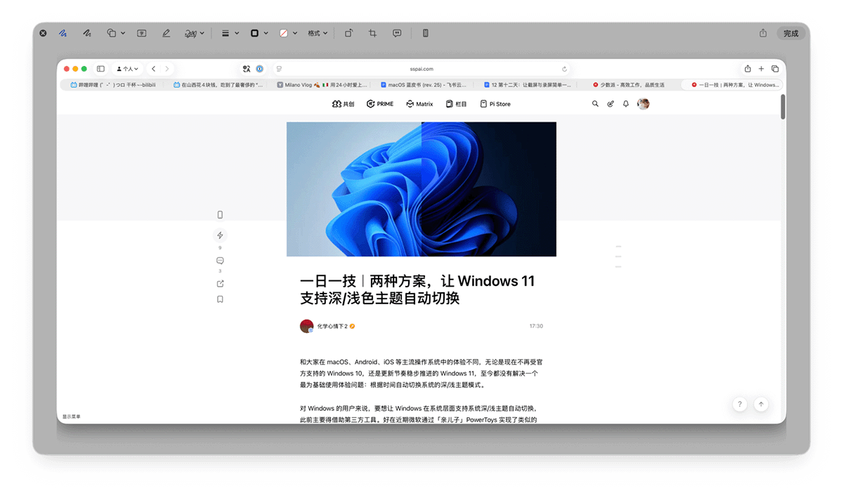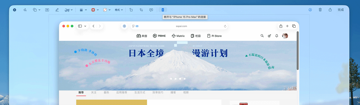 当我在 iPhone 上对图片做任意标记时,画面都会实时同步到 Mac 上。标记完成后,在 Mac 上点按「完成」,iPhone 上的标记窗口便会自动关闭,所有标记都会保存到截图中。