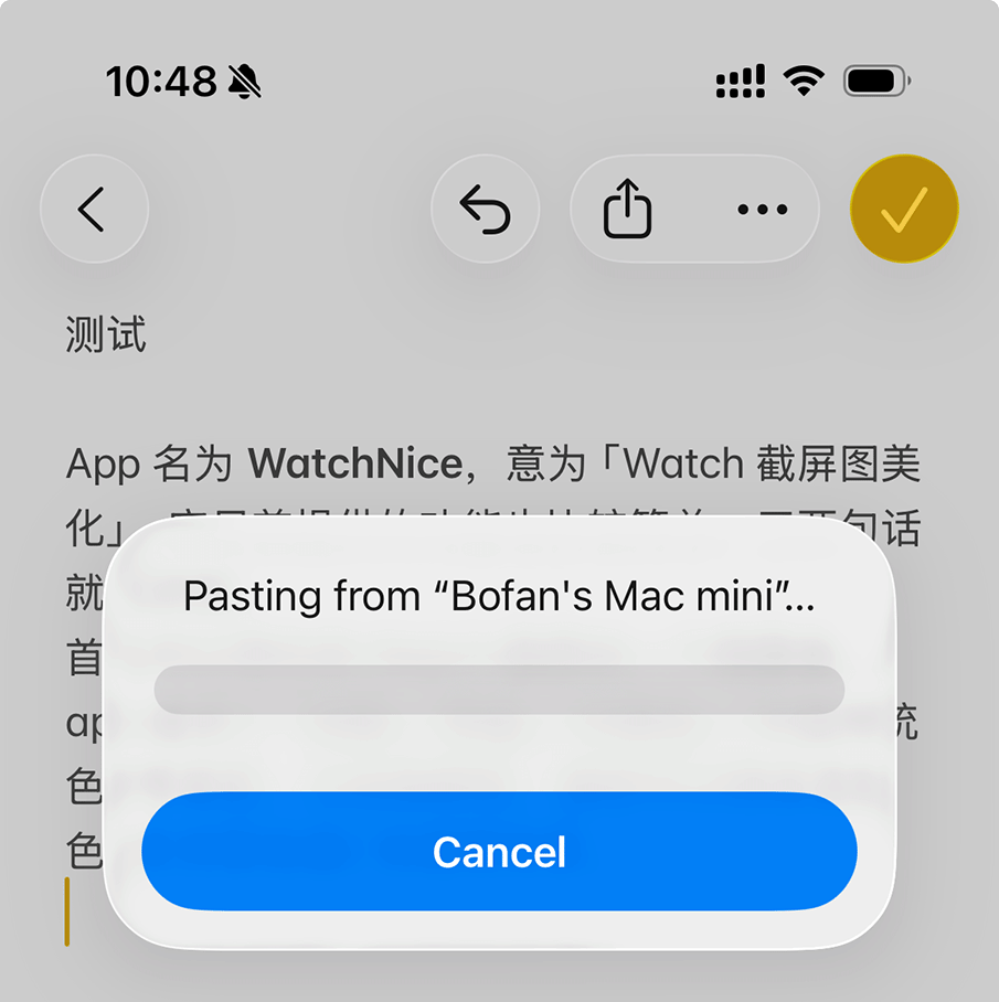 除了用隔空投送传输文件,你还可以通过通用剪贴板在 Mac、iPhone、iPad 或另一台 Mac 之间拷贝和粘贴文本。
