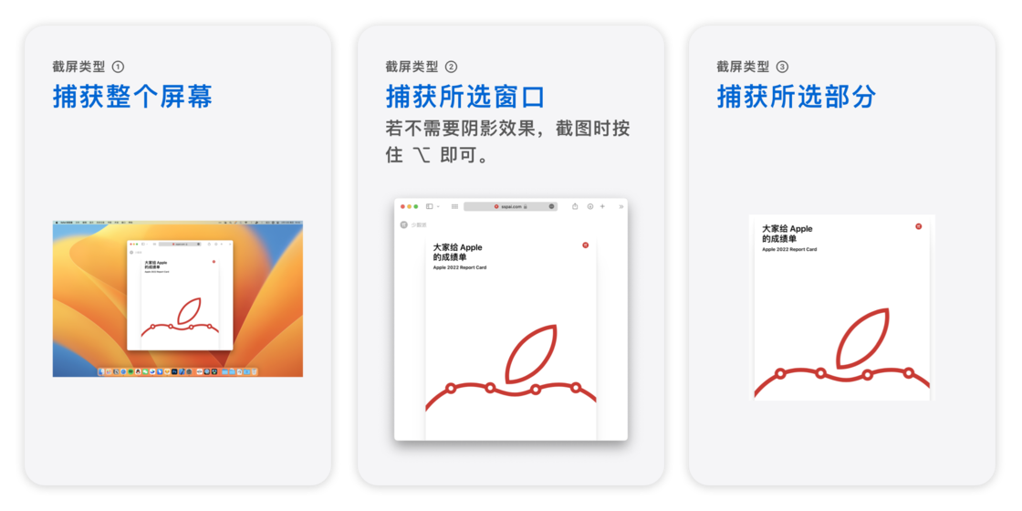 截屏服务包含三种选择,分别是「捕捉整个屏幕」、「捕捉所选窗口」和「捕捉所选部分」,而导出的图片都是 PNG 格式。其中,「捕捉所选窗口」截下的窗口会保留阴影,细节到位,看起来果味浓厚。倘若不想要阴影保留,截图时按下 ⌥Option 键即可。