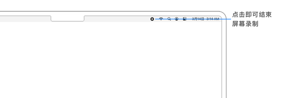 启用录屏功能后,再次点击录屏工具栏上的「录制」按钮就可以开始录制屏幕了。此时,在菜单栏上会出现一个「停止」按钮,点击它就会立刻结束录屏,并在屏幕右下角显示录制视频的缩略图。