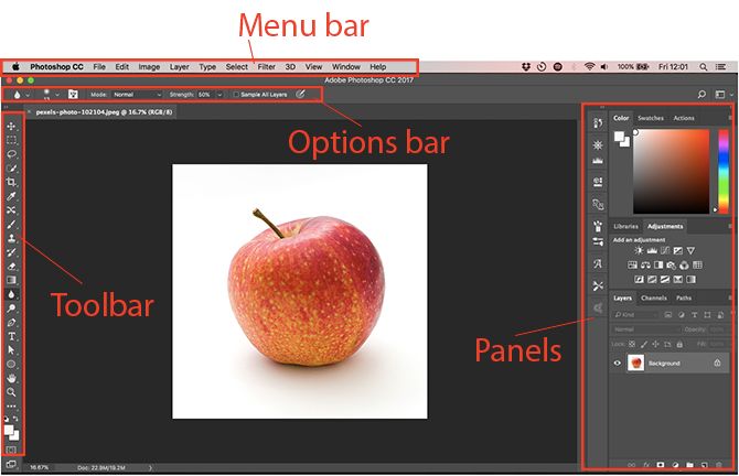 我们将遇到的Photoshop界面分为四个主要部分: