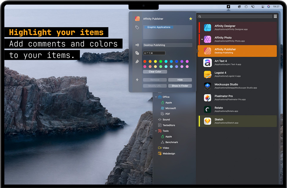 标记它并喜欢它!使用标记为您的应用程序,常用文件夹,脚本或任何其他文件创建集合。在macOS上对项目进行组织和排序从未如此简单。节省大量时间-搜索是昨天!