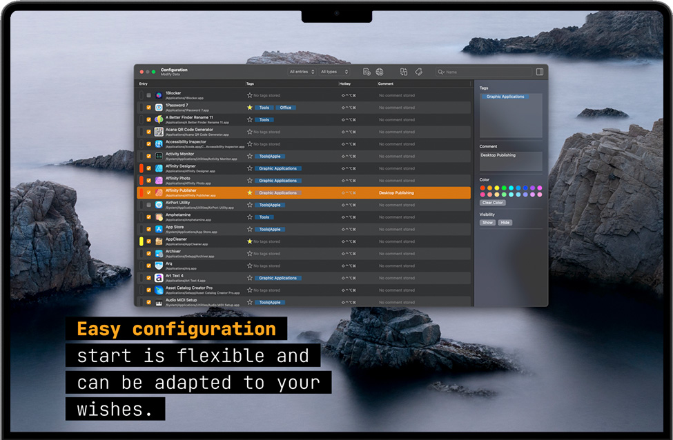 只需单击鼠标即可启动应用程序,甚至更快更方便:使用热键!还可以使用标签,颜色和注释来跟踪您的应用程序。享受简单的操作和舒适的启动功能!