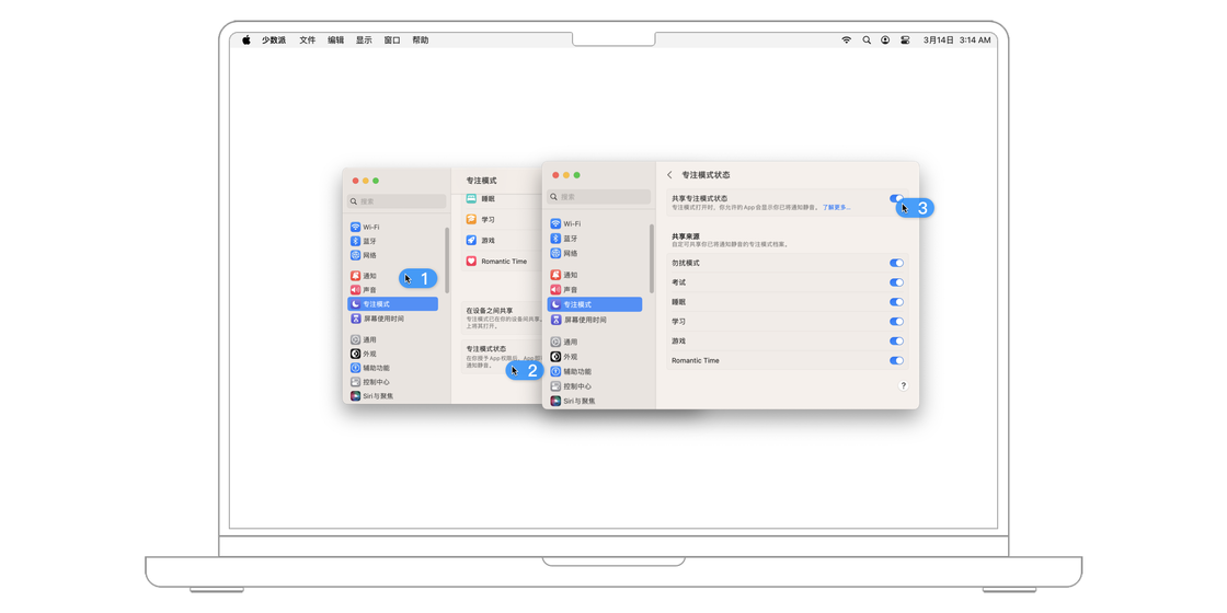 如果你不希望专注模式在不同设备中同时开启或关闭,你可以在以下地方关闭共享: